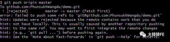 特别注意,如果你使用的不是clone而是直接本地init一个仓库与远程仓库关联的方式,第一次推送可能会遇到这个情况: