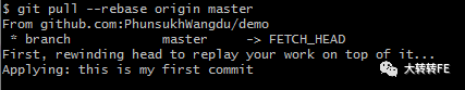 这条指令的意思是把远程库中的更新合并到本地库中,–rebase的作用是取消掉本地库中刚刚的commit,并把他们接到更新后的版本库之中,rebase具体下面会讲到,先看下结果