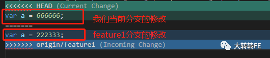 执行之后回去看冲突文件,就变回了merge之前的状态。