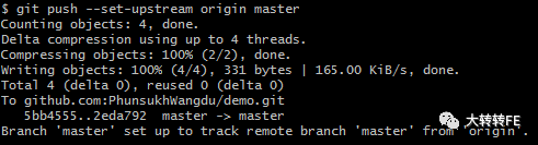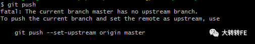 直接使用push会有这样的提示。意思是当前分支没有和上游远程分支做关联,git不知道你要推送到远程仓库的哪个分支上,我们想要和远程的master分支关联,按照提示输入: