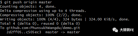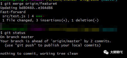 而如果没有冲突,我们一次执行merge,status看下工作区,再push到远端仓库: