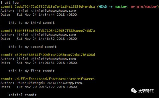 远程仓库的initial commit是第一条记录,我们刚提交的在后面