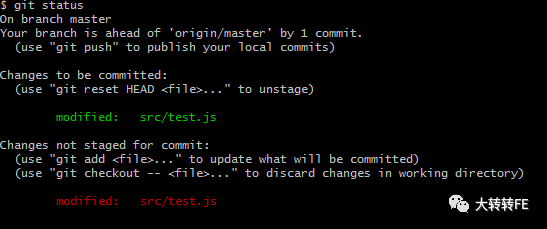注意,通过 add 添加进暂存区的不是文件名,而是具体的文件改动内容(上面创建文件那里说添加文件是方便理解),我们把在执行add时的改动都被添加进了暂存区,在add 之后的新改动并不会自动被添加进暂存区。所以对test.js执行了add之后如果再修改test.js,那么工作目录和暂存区都会有这个文件