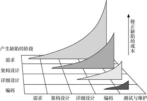 图1-1 不同阶段产生的缺陷在不同阶段修复的成本