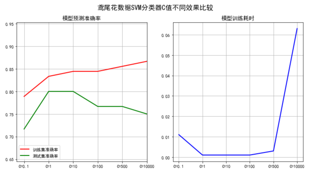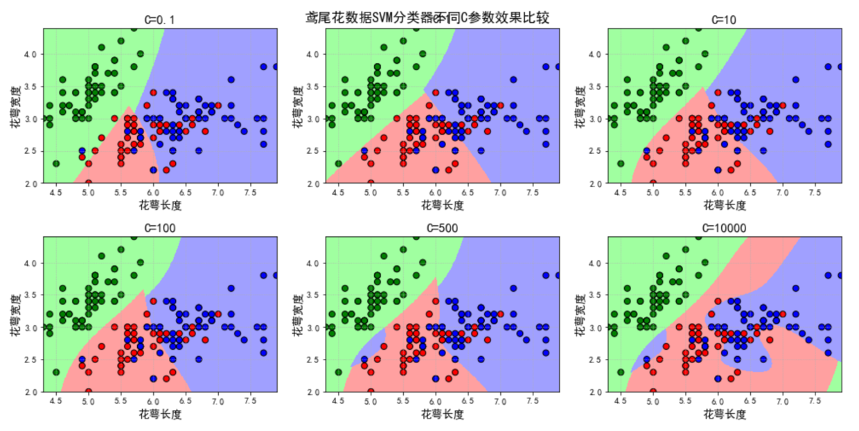 画图 - 鸢尾花数据SVM分类器C值不同效果比较:
