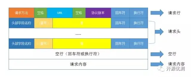 由请求方法字段、URL字段、协议版本字段三部分构成,它们之间由空格隔开。常用的请求方法有:GET、POST、HEAD、PUT、DELETE、OPTIONS、TRACE、CONNECT。