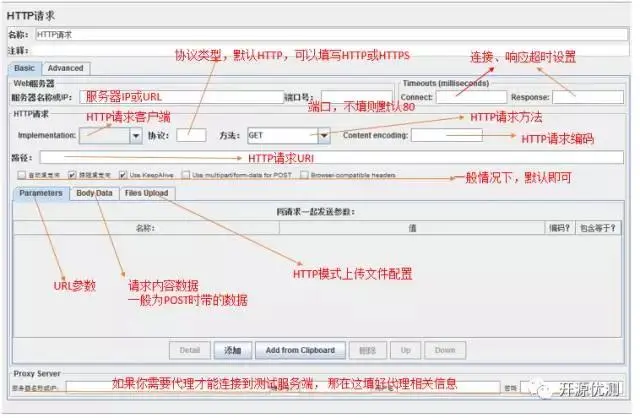 下面我们一起看看HTTP Request元素的基本配置说明,了解下基本的功能。
