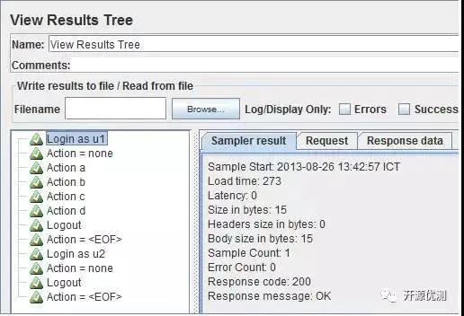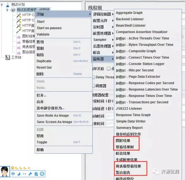 在jmeter中Listeners提供了执行结果生成和显示能力的支持,提供了树形结构、表、图形和日志方式。