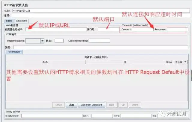 HTTP Request Defaults HTTP Request Defaults用于配置HTTP request的默认值,例如IP、端口等等都设置好默认值后,在后续HTTP request元素里就不需要重复设置,节省时间。