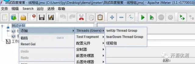 在左边操作栏中选择“测试计划”,右击新增一个线程组,如图所示: