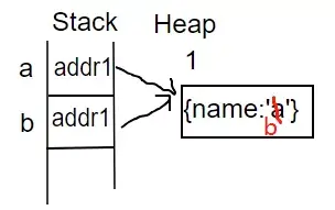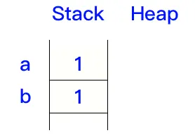 当运行至var b = a时a和b的指向相同,此时运行b.name = 'b',更改了heap中地址1中的信息,如图所示。所以这个时候a.name的结果是"b"。