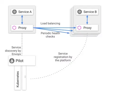 另一个方式就是我们通过 Sidecar 来代理将服务注册到服务注册中心上面去,当一个 Python 或者 CPP 的系统启动的时候,它需要主动告诉对应的 Sidecar,它需要发布哪些服务,Sidecar 会将服务注册到对应的服务注册中心,当一个系统启动的时候,他需要主动告诉对应的 Sidecar,它需要订阅哪些服务,Sidecar 会从 Pilot 中将对应的服务的地址订阅过来。