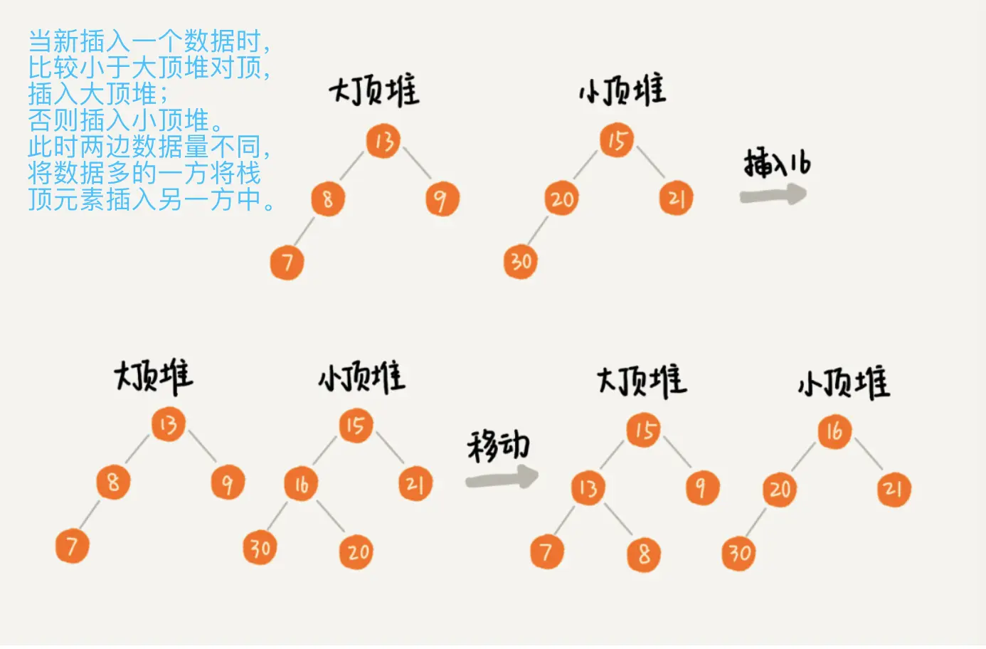 以此类推,两个堆不仅可以就觉求中位数的问题,还可以快速求出其他百分位的数据,原理类似。