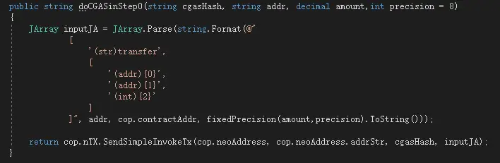 - neoTranstion类,目前实现了普通转账交易和合约调用交易,一键构造、签名、发送