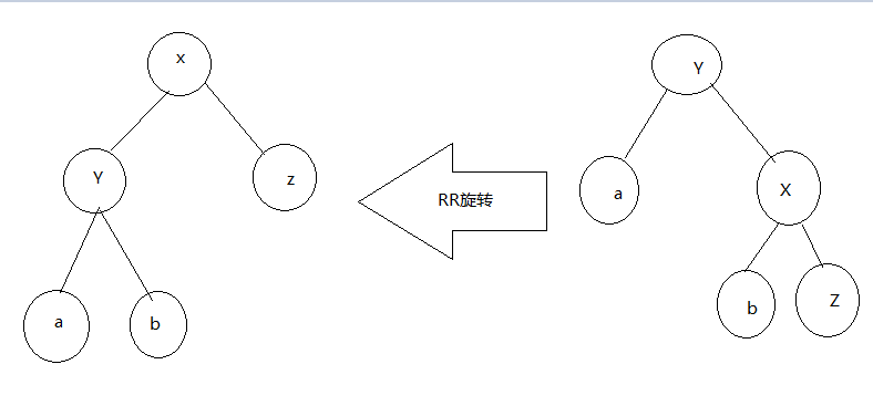 RR:RightRight,也称“右右”。插入或删除一个节点后,根节点的右孩子(Right Child)的右孩子(Right Child)还有非空节点,导致根节点的右子树高度比左子树高度高2,AVL树失去平衡。