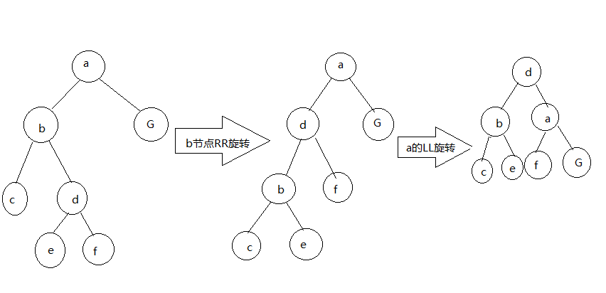 LR:LeftRight,也称“左右”。插入或删除一个节点后,根节点的左孩子(Left Child)的右孩子(Right Child)还有非空节点,导致根节点的左子树高度比右子树高度高2,AVL树失去平衡。