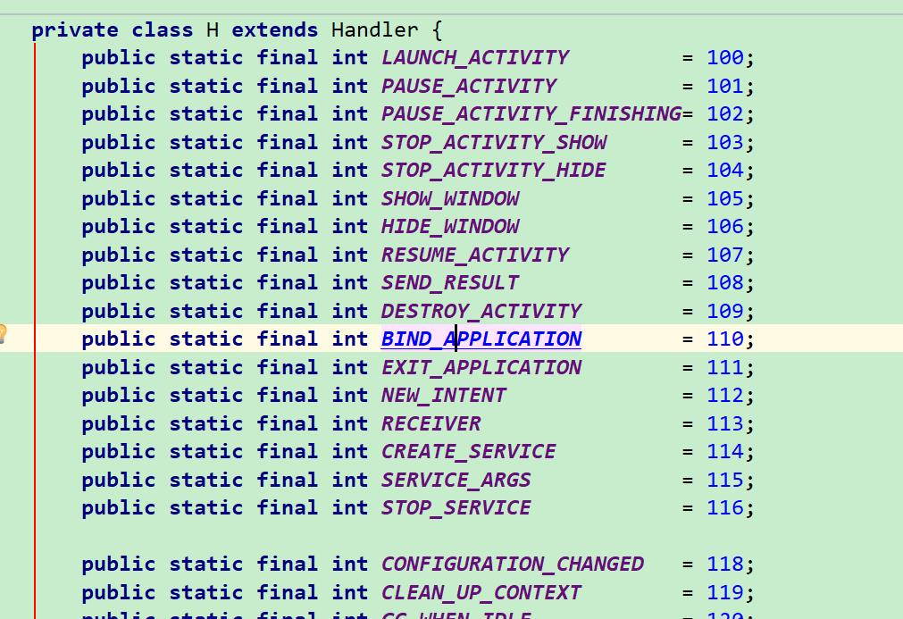 相信看到这个,大家都会恍然大悟了,这就是我们学习 Java 的时候的 main 方法,认为是程序的入口。可以看到方法里面对一个 Looper 对象进行了初始化,Looper.prepareMainLooper() 通过这个方法就给当前的线程初始化了 Looper,这个 Looper 成了 Application 的 main looper,这也是为什么我们在主线程中不用自己再 Looper.prepare 的原因。可以认为任何在主线程的操作都会发送到这个 Looper 对应的 Handler 中去。很容易可以找到 Looper 对应的 Handler,其实就是 ActivityThread 的一个内部类,继承了 Handler
