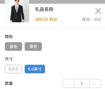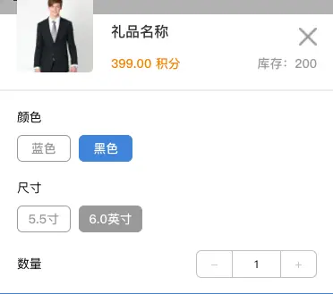 现有需求,当点击颜色时进行校验,若蓝色6.0寸无库存时禁选。 先上效果截图: