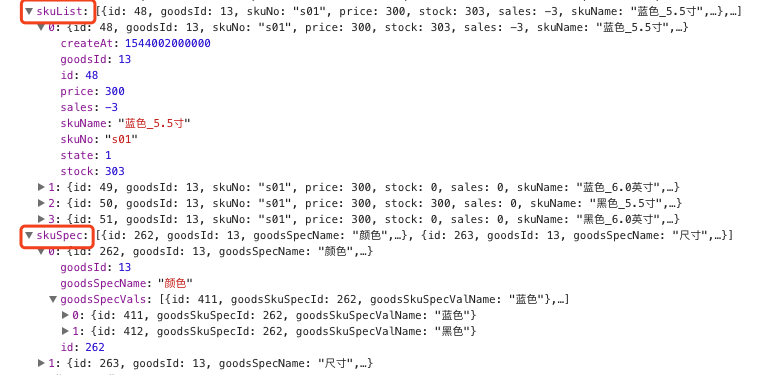 解析:sku组合中含有spu,就将将该条sku信息拼入spu对象里,键为children 如图: