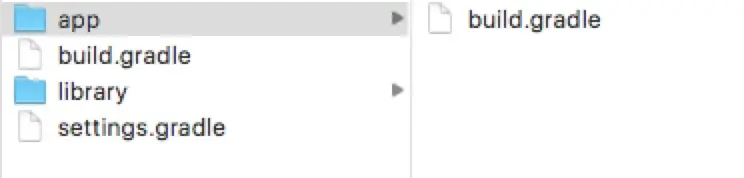 如图所示,在项目根目录创建一个 settings.gradle,在根目录、app以及library目录下也都创建一个 build.gradle 文件。