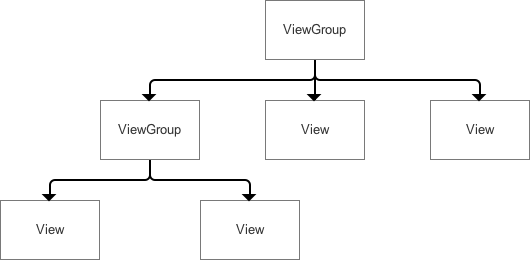 对于多View的视图,结构是树形结构:最顶层是ViewGroup,ViewGroup下可能有多个ViewGroup或View,如下图: