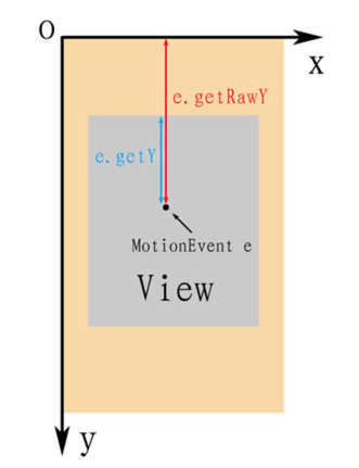 //get() :触摸点相对于其所在组件坐标系的坐标event.getX(); event.getY();//getRaw() :触摸点相对于屏认坐标系的坐标event.getRawX(); event.getRawY();