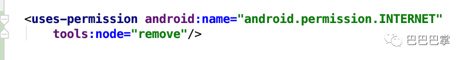 我在前一篇文章有写关于权限删除和收口的文章,使用的是 hook 打包流程的方案,后来有朋友告知我有一种写法是 tools:node="remove" ,这样可以直接删除三方 SDK 里的权限,讲实话我也是被他说之后才知道有这么一个写法。比如三方 SDK 里有使用 INTERNET 权限,我想移除它,那只需要在自己的 AndroidManifest.xml 里这么写即可: