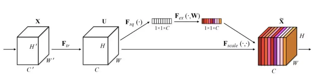 return multiply([x, m])每个通道都被压缩成单个值,并被馈送给一个两层神经网络。根据通道的分布情况,该网络会学习基于它们的重要性为这些通道加权。最后,这些权重会与卷积激活相乘。
