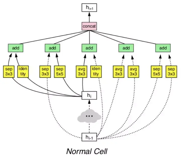 return concatenate([a, b, c, d, e])你可以这样用 Keras 实现 Normal Cell。其中没什么新东西,但这种特定的层的组合方式和设定效果就是很好。