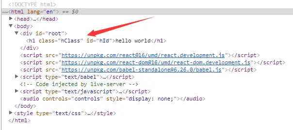 可以看到和之前的 JSX 写法const vDom = <h1>Hello World</h1>效果是一样的