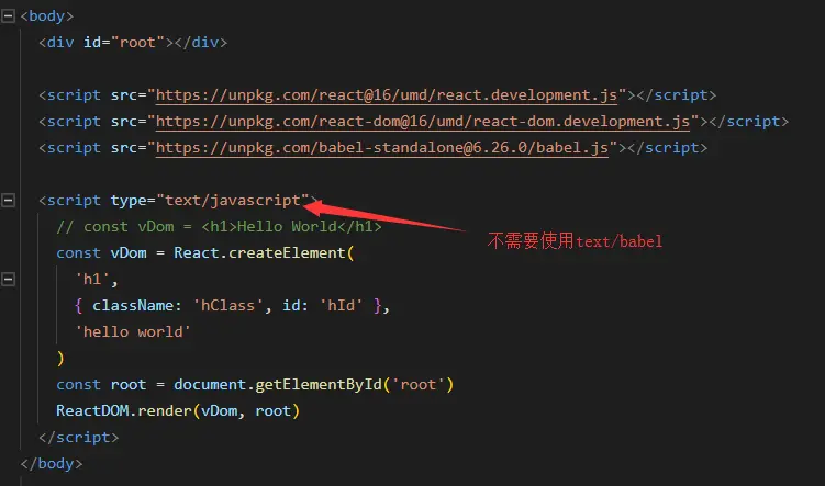 ReactDOM.render(vDom, root) // 把创建的h1标签渲染到root节点上