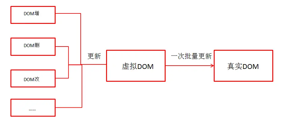 - 每次修改时,先在虚拟 DOM 上更新,最后在批量更新整个页面,这样页面只需要一次大的更新,效率很高