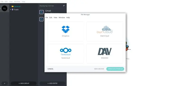 你还可以在添加存档时在 Buttercup 的欢迎界面连接这些服务。