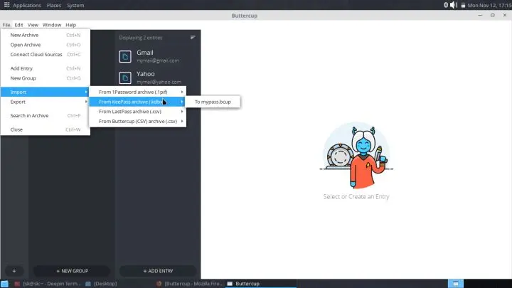 Buttercup 允许你向其他密码管理器(例如 1Password、Lastpass 和 KeePass)导入导出数据。你也可以导出数据,在另一个系统或设备(例如 Android)中访问它们。你还可以将 Buttercup 保险库导出为 CSV 格式文件。