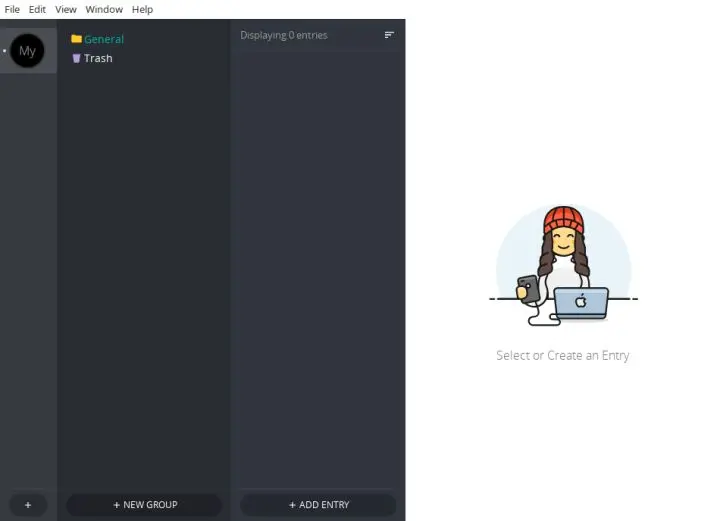 它就像一个保险库,我们将保存不同账户的登录凭证。如你所见,我们并没有添加任何条目。让我们添加一些。