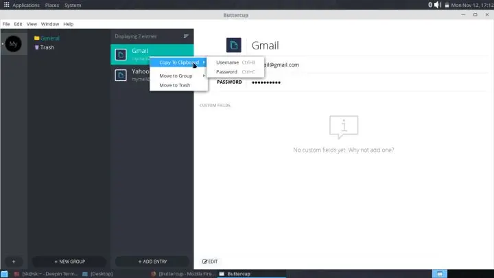 添加完所有条目后,你将在 Buttercup 界面的右侧窗格中看到它们。