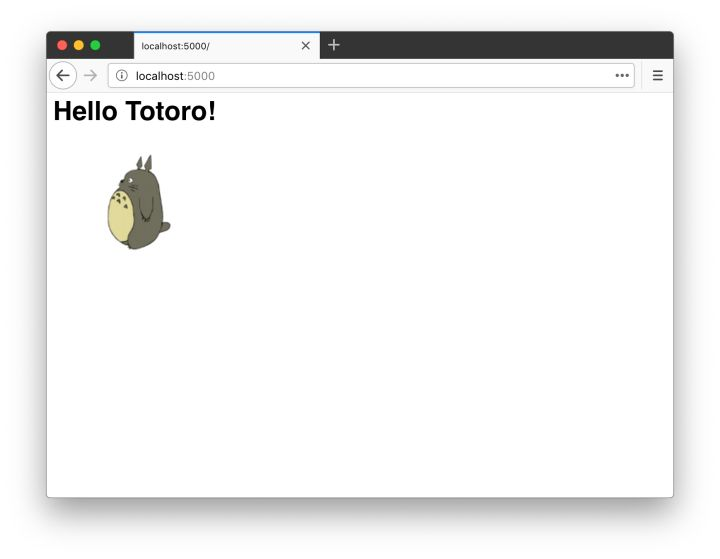return '<h1>Hello Totoro!</h1><img src="http://helloflask.com/totoro.gif">'保存修改后,只需要在浏览器里刷新页面,你就会看到页面上的内容也会随之变化。