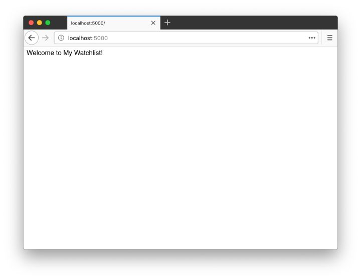 return 'Welcome to My Watchlist!'按照惯例,我们把程序保存为 app.py,确保当前目录是项目的根目录,然后在命令行窗口执行 flask run 命令启动程序(按下 Control + C 可以退出):