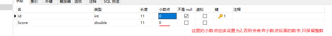 在数据库插入带小数点数据的问题 我是你的酱 2018-12-11 676 阅读1分钟 想在mysql插入以下数据 设计表的时候没有注意,之前都用的int,这次换成了double,但是插入第一条3.50的时候数据库显示为: 查了之后知道是设计表的时候没有注意小数点的设置