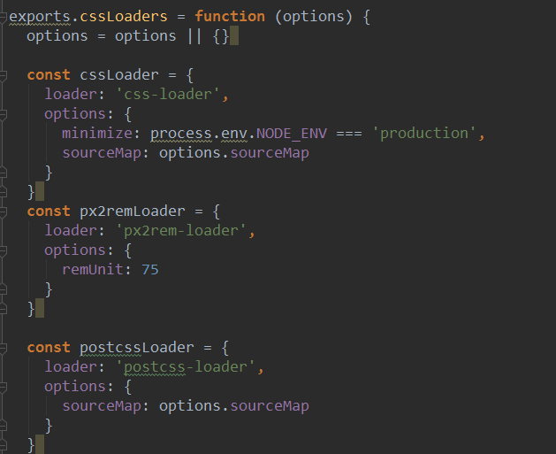 - 配置px2rem-loader:在build文件中找到util.js,将px2rem-loader添加到cssLoaders