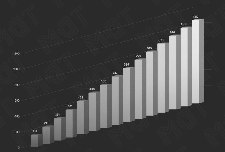 在亮度方面,通过 ScreenBar Lite 的控制旋钮,可以调节 15 档明暗级别,在距离台灯几何中心的垂直投影点 30cm 的点测得的照度结果如下图所示,最高可以达到 1057 lx 最低为 151 lx,每级之间的间隔较为均匀,不会出现某一级别变化特别大或者特别小的情况。