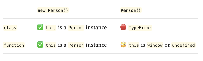 var fred = new Person('Fred'); // ✅ Person {name: 'Fred'}