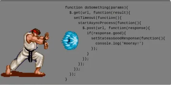 先讲一下什么是回调地狱->callback hell,给大家看一张图片,回调地狱就是异步里面套了异步,下面的异步请求依赖于上一个异步请求的结果,必须嵌套进去,放在回调里面,就形成了回调地狱。为了解决这一问题,es6出现了一个api,就是promise.