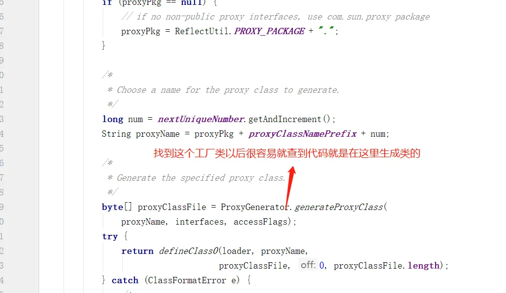 真相大白了。但是因为这个类是动态运行时候生成的,所以我们想看他的字节码反编译以后的代码 就得拿到这个class文件,但是显然我们是拿不到这个文件的。但是因为找源码找到这里