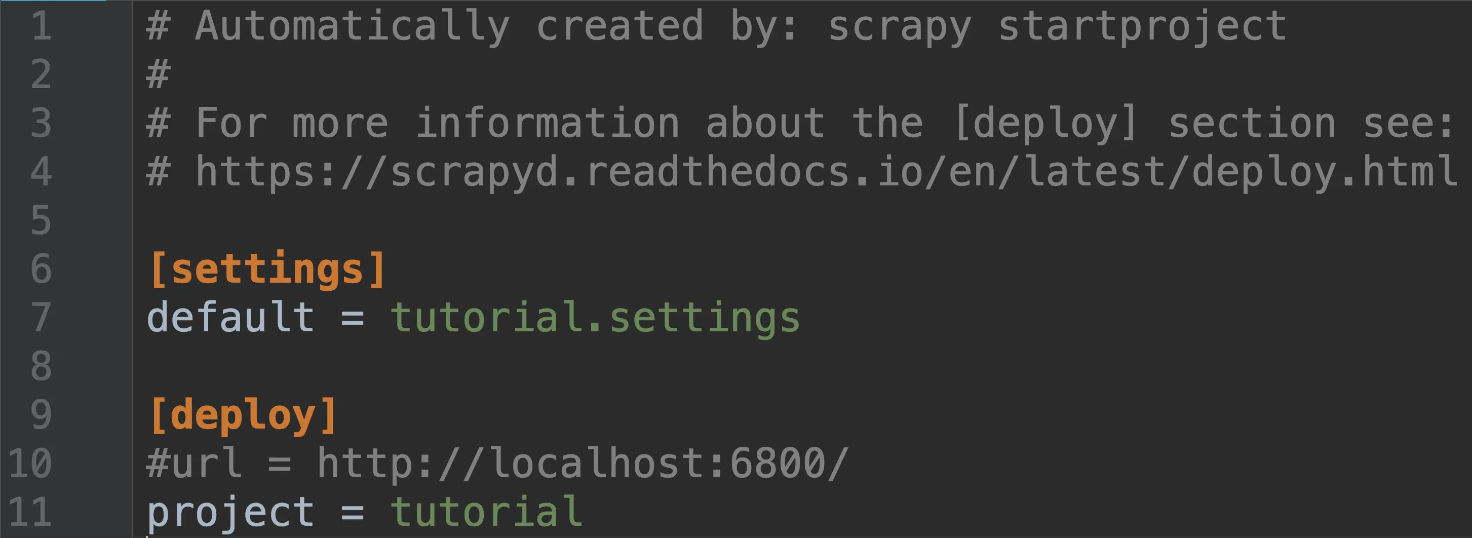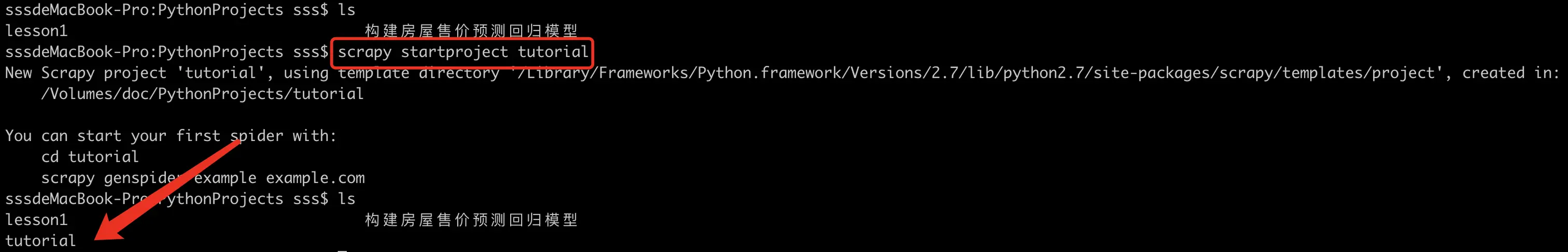 scrapy startproject tutorial