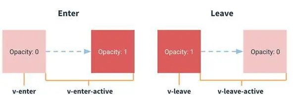 在过渡的时候,会有 4 个(CSS)类名在 enter/leave 的过渡中切换。