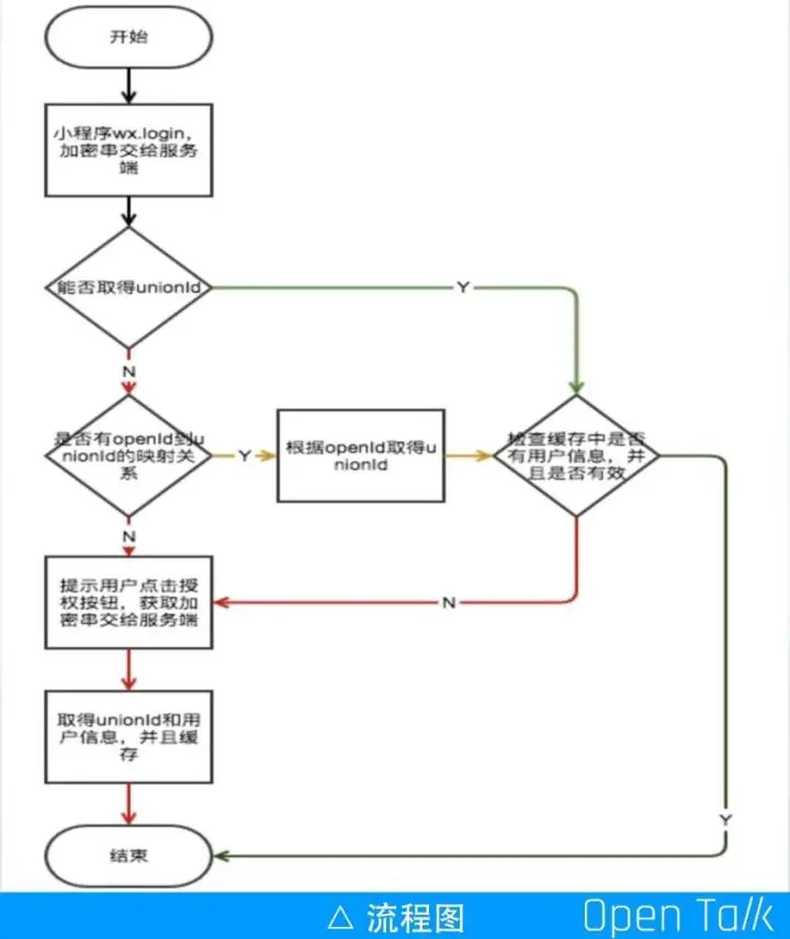 我们可以利用微信的 wx.login 接口实现小程序的静默授权。首先它是静默的且易获得 openid,在满足一定条件的情况下甚至能返回 unionid,比如用户关注过公众号等。因此,我们假设如果在拿到用户信息之后,能够缓存 unionid 和用户信息,只要取得 unionid 就可以拿到用户信息。如果在用户授权以后再缓存 openid 和 unionid 的映射关系,那么之后我们只需要调用微信 login 接口,拿到 openid 就可以拿到用户的信息。简单的流程就是通过 openid 去获得 unionid 的映射关系,然后再获得用户的信息。