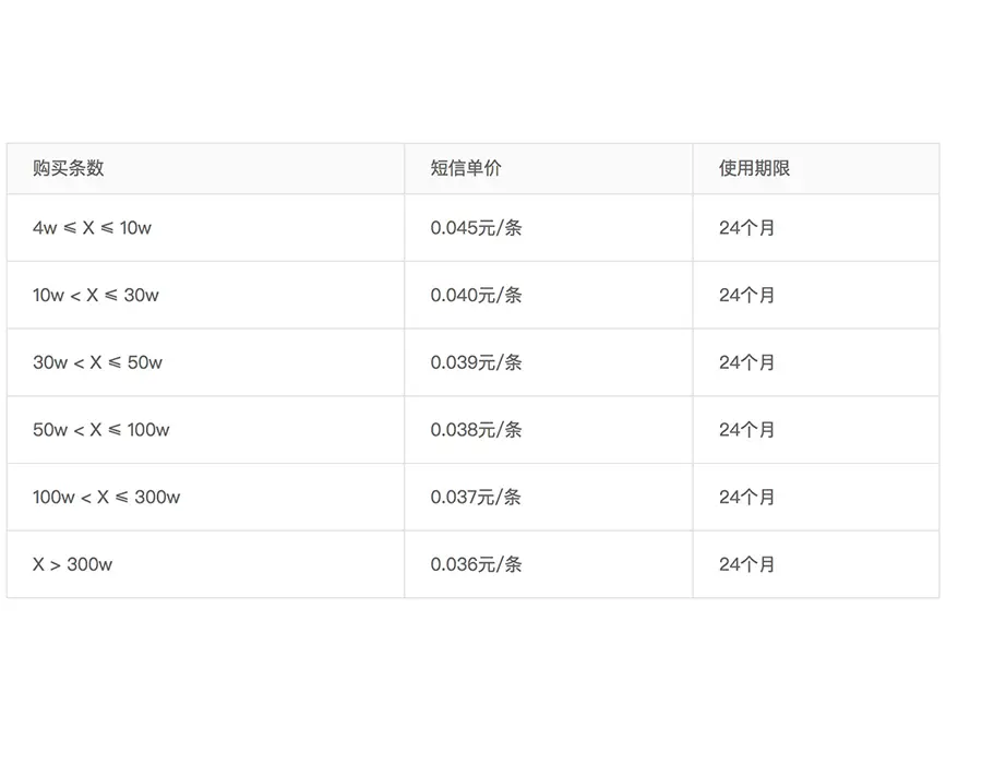增加企业成本——向用户手机号发送验证码,需要向提供服务的企业支付一定的费用,下图是网易云·易盾的短信验证码价目表。