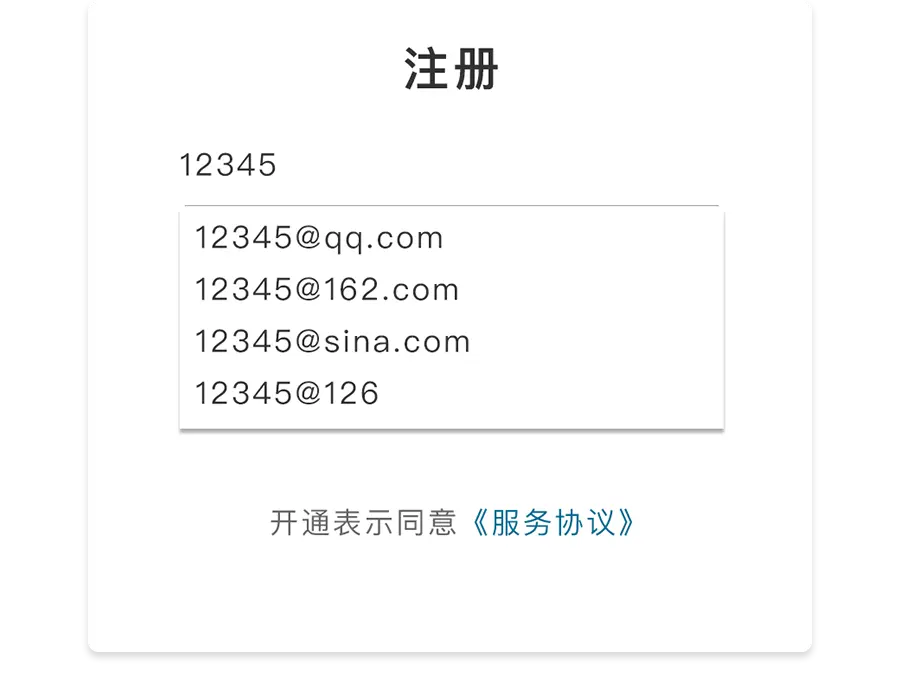 第一种,如下图所示,对于只提供邮箱注册登录的产品,在用户开始填邮箱号时就提供相应的邮箱共用户选择;