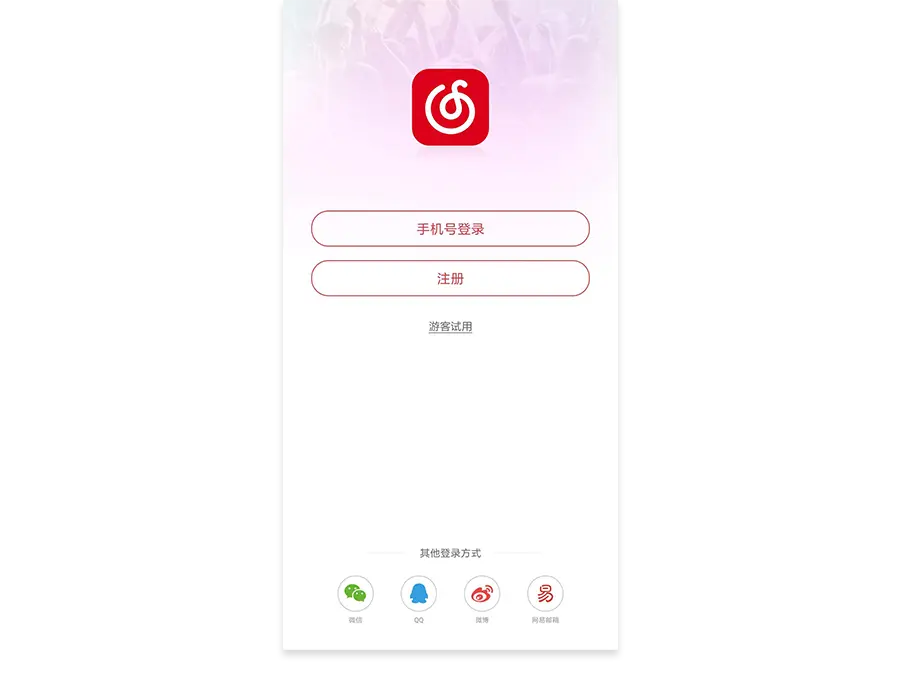 第二种是登录与注册保持同一优先级,如下图网易云音乐登录注册页所示,登录与注册以同样的视觉重量进行展示。